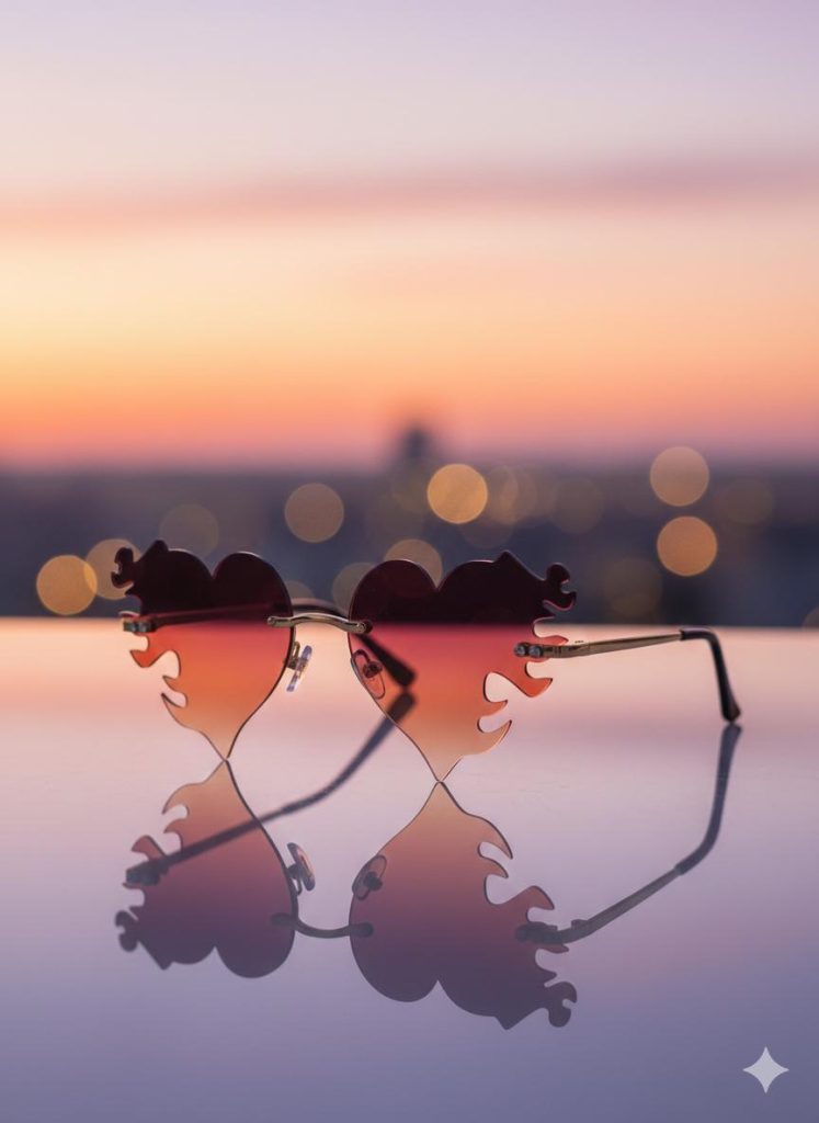 Lentes en forma de corazon en llamas