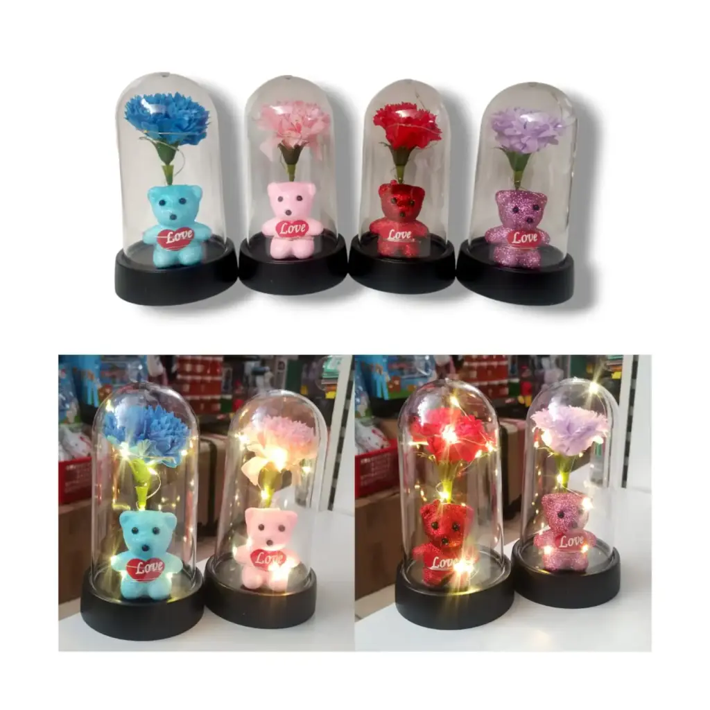 Rosa eterna de osito con luz led