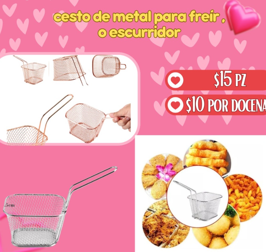cesto de metal para freír o escurridor $15 pz 10 por docena