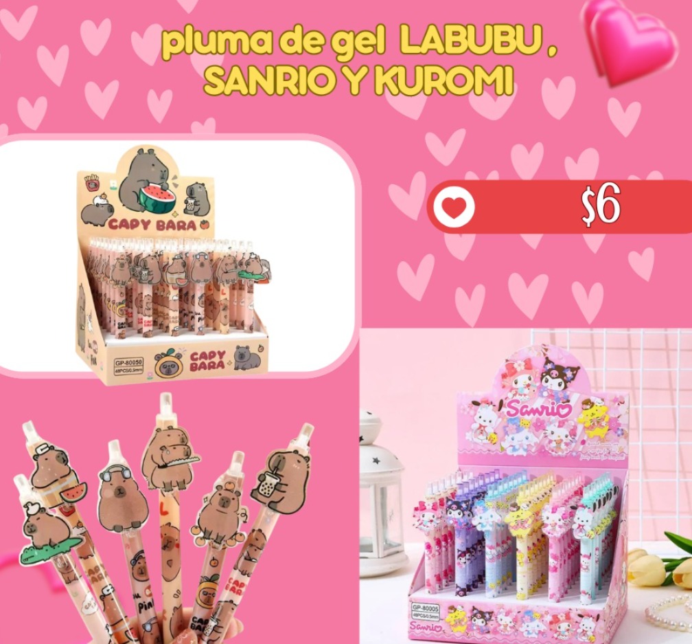 pluma de gel LABUBU , SANRIO Y KUROMI